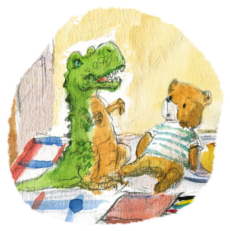 T-Rex and T-Bear are Anthony’s favorite toys. T-Rex is a very detailed model of a dinosaur that Anthony likes to draw. T-Bear mostly tags along on adventures that Anthony and T-Rex create.